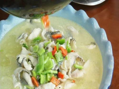 2. 将炒好的黑鱼片放入酸菜汤中,中火煮5分钟。