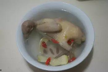 - 炖至鸽子熟透,加入枸杞、红枣、党参等调料,继续炖煮。